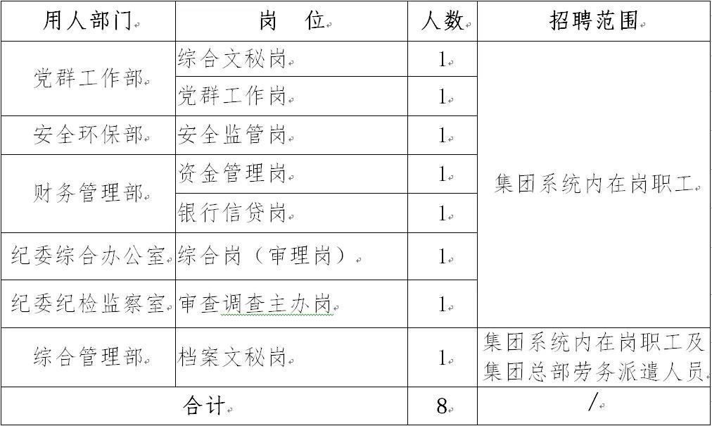 详见《江投集团总部面向集团系统内公开招聘岗位需求表》(附件1)。